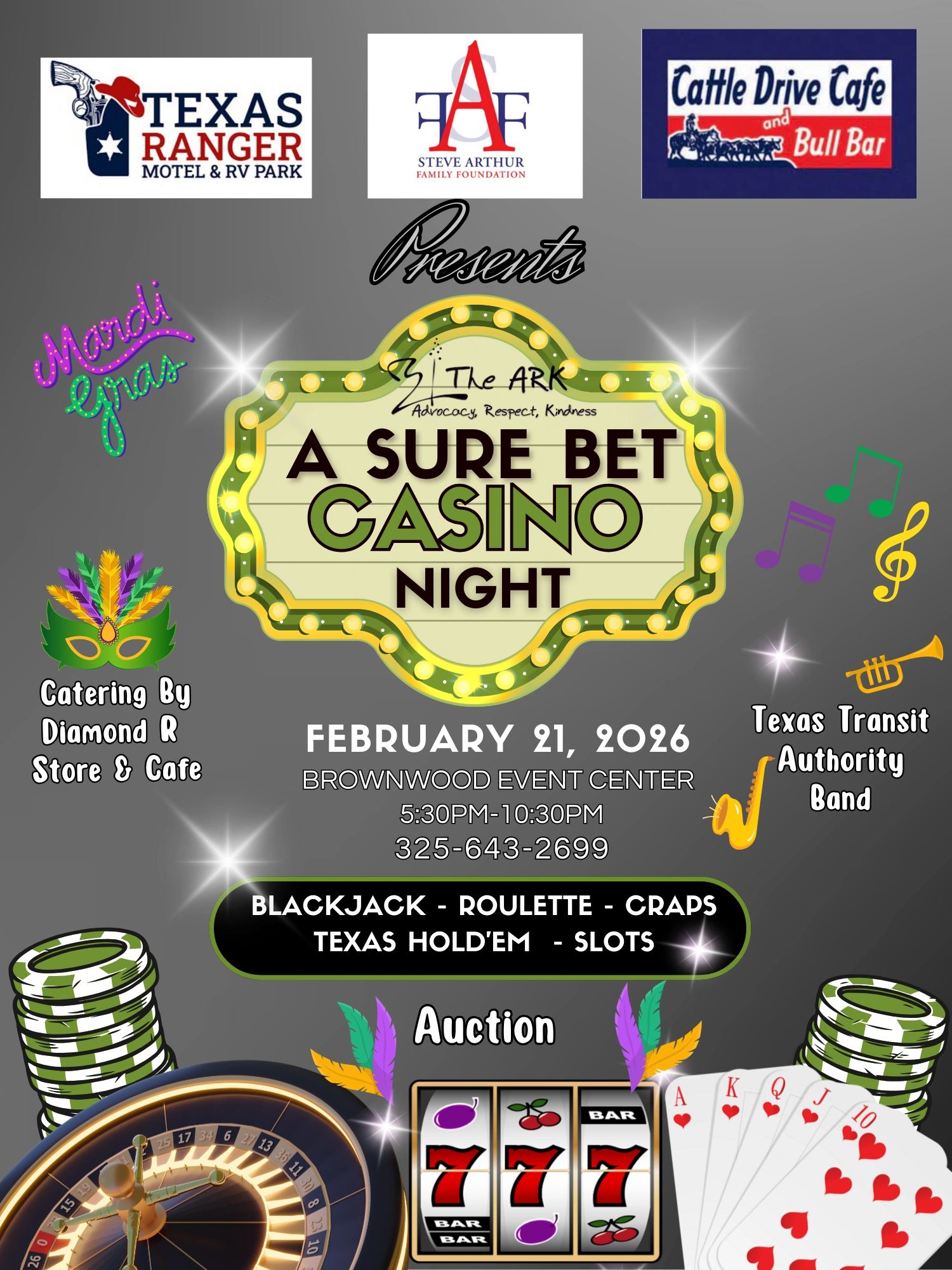 The ARK will be having our annual Casino Night Fundraiser on February 21st, 2026 5:30pm-10:30pm.